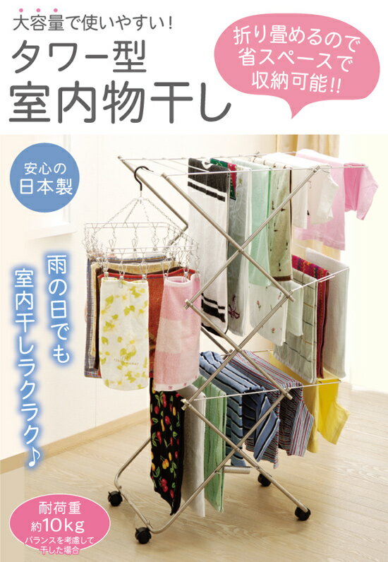 【送料無料】物干し台 物干し 大容量 部屋干し 洗濯物 雨 梅雨 タワー型室内物干し大 3段 ステンレス 折りたたみ 簡単 丈夫 収納 コンパクト キャスター 移動 大木製作所 Ohki