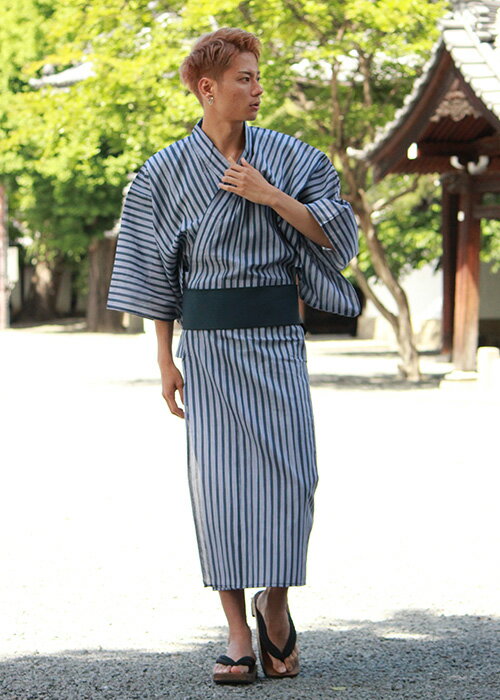 2018新作!浴衣 3点セット(浴衣/帯/下駄) 本麻 近江ちぢみ 近江縮 伝統工芸 苧麻(ちょま)ラミー 黒 ぼかし ストライプ 縞 レトロ 浴衣 男性 浴衣セット 紳士 きもの メンズ 浴衣男子 ゆかた男子 ゆかた M L LL 角帯 下駄 麻 本麻縮 昭和モダン 上質