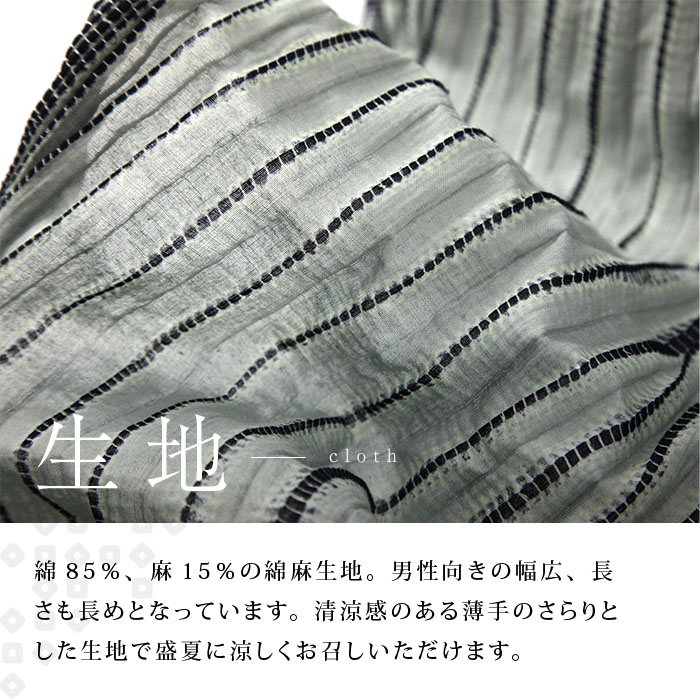 【反物】※仕立て代込※ 浴衣 有松絞り 紳士 男物 メンズ 〔全行程国産〕柳絞り グリーン系 ベージュ 縞 | 幅広 長尺 綿麻 有松 鳴海 絞り 浴衣 洗える 着物 単衣・夏着物にも | 反物からお仕立 | S M L LL お仕立て代込 送料無料
